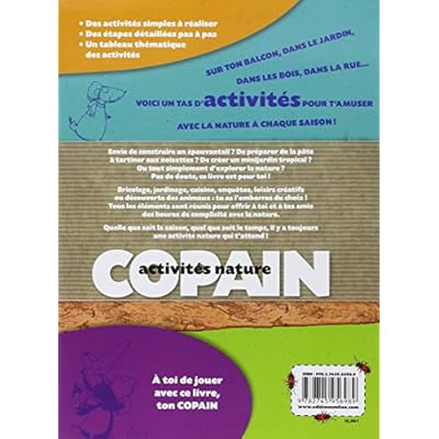 Envie de construire un épouvantail ? De préparer de la pâte à tartiner aux noisettes ? De créer un minijardin tropical ? Ou tout simplement d'explorer la nature ? Pas de doute, ce livre est pour toi ! Bricolage, jardinage, cuisine, enquêtes, loisirs créatifs ou découverte des animaux : tu as l'embarras du choix ! Tous les éléments sont réunis pour offrir à toi et à tes amis des heures de complicité avec la nature. Quelle que soit la saison, quel que soit le temps, il y a toujours une activité nature qui t'attend !